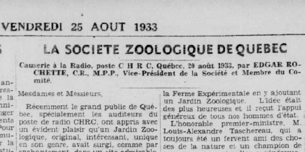 Comme la radio captive l’auditoire de la province dans les années 1930, on diffuse périodiquement des causeries en direct. Elles sont animées par des membres de la Société zoologique. Par exemple, on publie le compte-rendu de celle donnée par le docteur R. Rajotte, dans l’édition du lundi 17 juillet. Le 20 juillet, on invite un groupe visiteurs de l’hôtel de ville, dont le maire Lavigueur. Le 26 juillet, on annonce fièrement que le jardin a reçu 35 000 visiteurs.