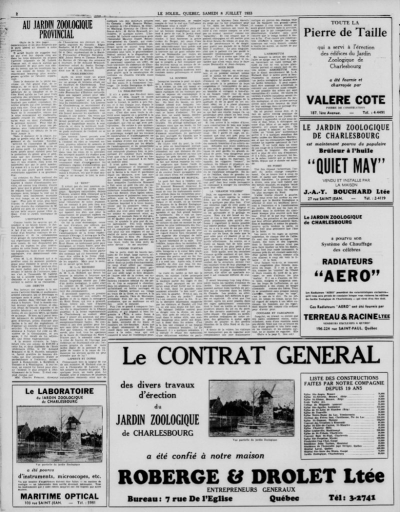 – Articles sur le Jardin zoologique Charlesbourg – Le Soleil – 1933 - Barbeau Marius