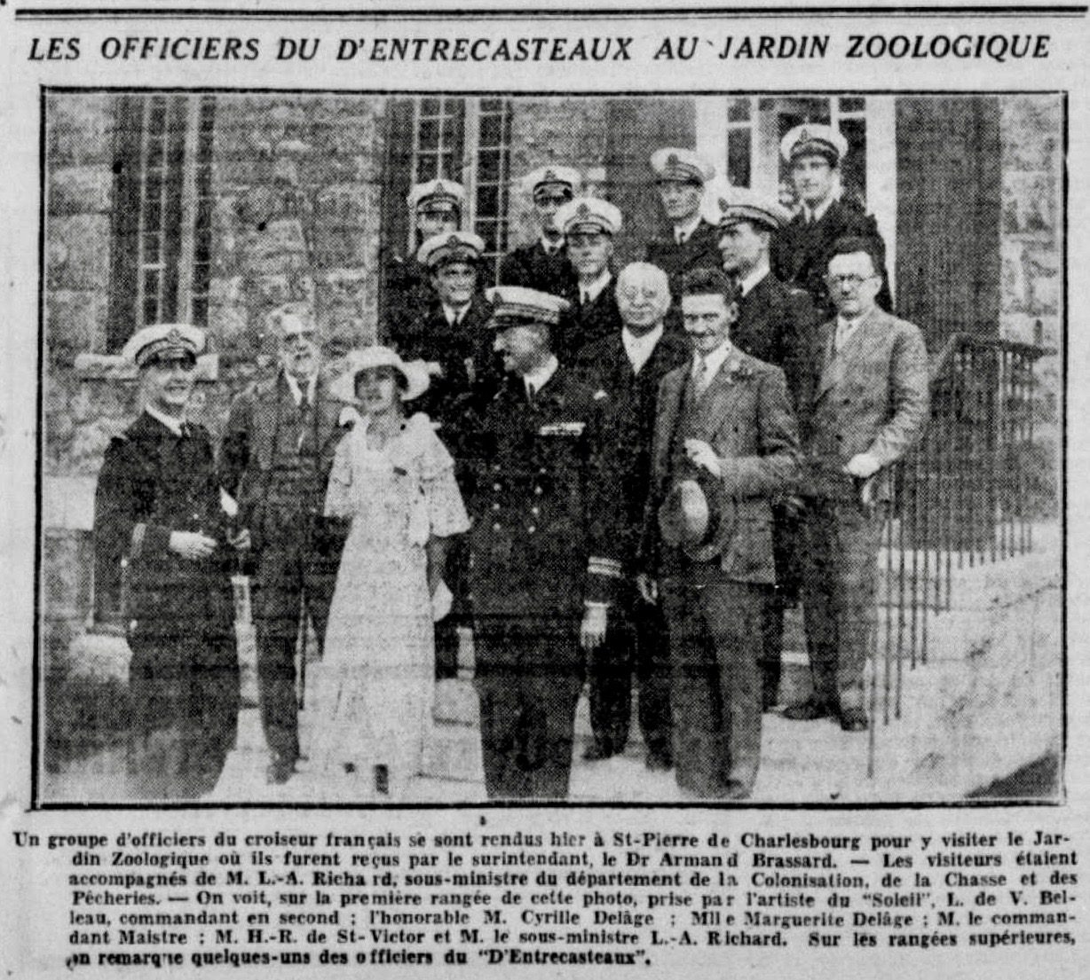 Le 28 juillet sera l’événement le plus remarquable pour les membres de la Société Zoologique. Le jardin accueille de la visite prestigieuse! M. René Turck, le nouveau consul général de France au Canada, arrive par le train du Pacifique Canadien le 27 juillet, tandis que le croiseur français D’Entrecasteaux arrive le 28 devant la Citadelle, en saluant la ville de 21 coups de canon.