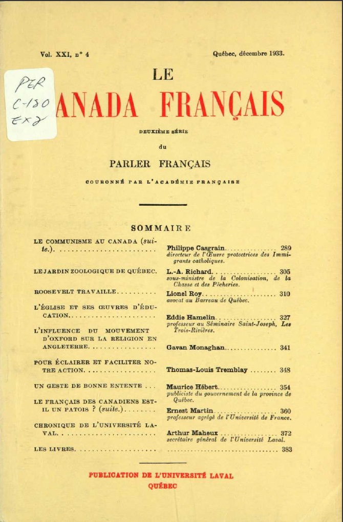 Le Canada Français Décembre 1933