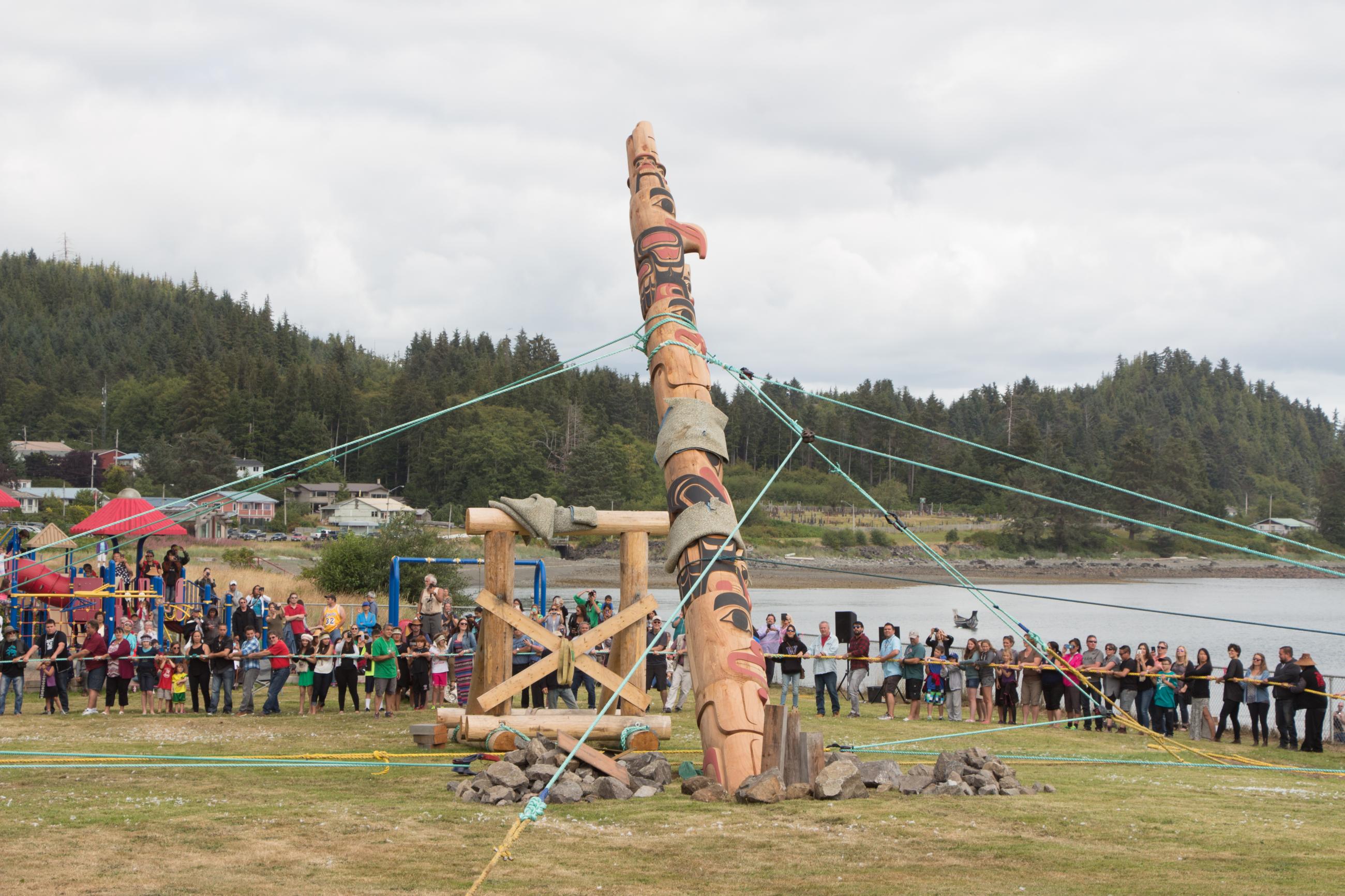 Erecting totem pole No. 19