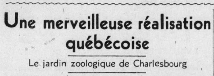 Enfin mes derniers mots seront une invitation cordiale, non seulement au public des environs de Québec; mais de la province toute entière. Cette année, à l’occasion du 4e centenaire de la découverte du pays, il y aura des fêtes jusque dans la vieille cité de Champlain. Or, comme les visiteurs viendront des quatre coins de la province et d’ailleurs, ce sera, je crois, la meilleure occasion de faire une visite à cet endroit enchanteur. Votre voyage ne sera pas complet si vous n’avez vu le Jardin Zoologique de Québec.