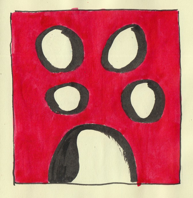 Voilà donc 30 petites créations de 1 po x 1 po (2,5 cm x 2,5 cm), réalisées au crayon feutre à pointe fine, à la brosse feutre Pitt Artist Pen, ainsi qu’à la plume Pentel Pocket Brush. Rien de miraculeux. Quelques marques réalisées sans porter un soin extrême à la technique, mais plutôt en prenant soin de réaliser des motifs répétitifs ou originaux. Un vocabulaire de marquage se développe petit à petit en utilisant cette approche. On force un peu son imagination pour inventer de petites variations. Le journal créatif devient alors un petit entrepôt d’idées, comme un dictionnaire visuel qui s’enrichit avec le temps. Bref, vous achetez un cahier de croquis, quelques feutres et vous voilà en marche!